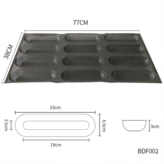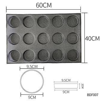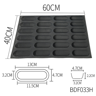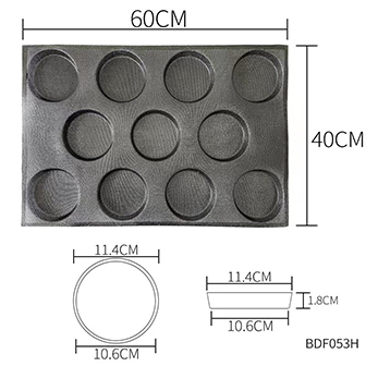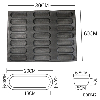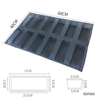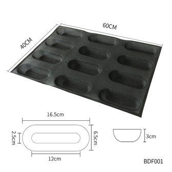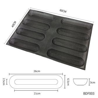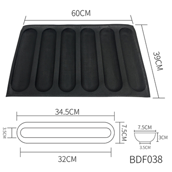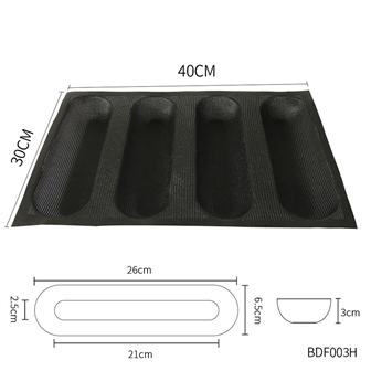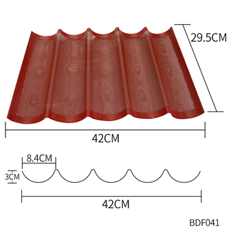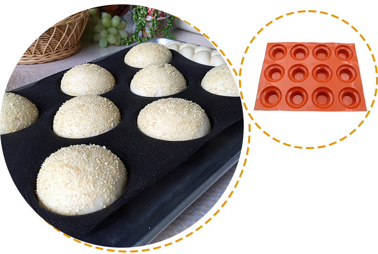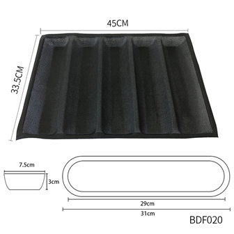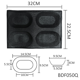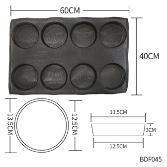 Perforated silicone bread baking molds are made of woven glass coated with food-standard silicone. They are compatible for all types of ovens and are excellent to be used for baking bread, cookies, tartlets as well as frozen dough. They are light in weight, easy to use and with incredible long service time. Due to their non-stick property, there is no need to apply oil, grease or baking paper to the inside surface. The molds are also specially designed to be perforated to make it easy for gas removal and thus improve bread quality.